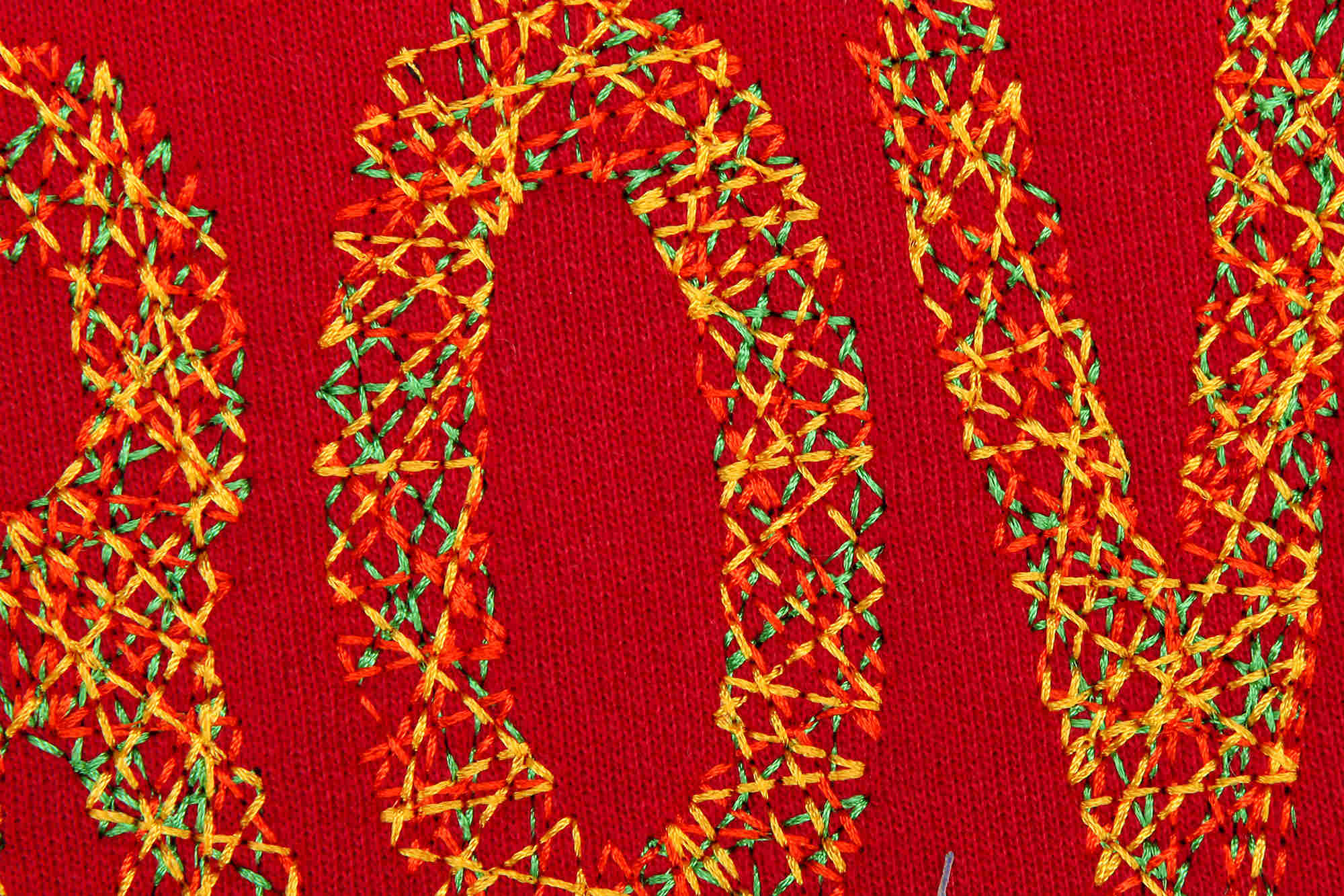 Licht mit transparenten Flächen - diese Technik ist wunderbar für das Ausfüllen von großen Flächen mit einem interessanten grafischen Effekt geeignt. Wir empfehlen Farbkontraste zwischen Gewebe und Garn.