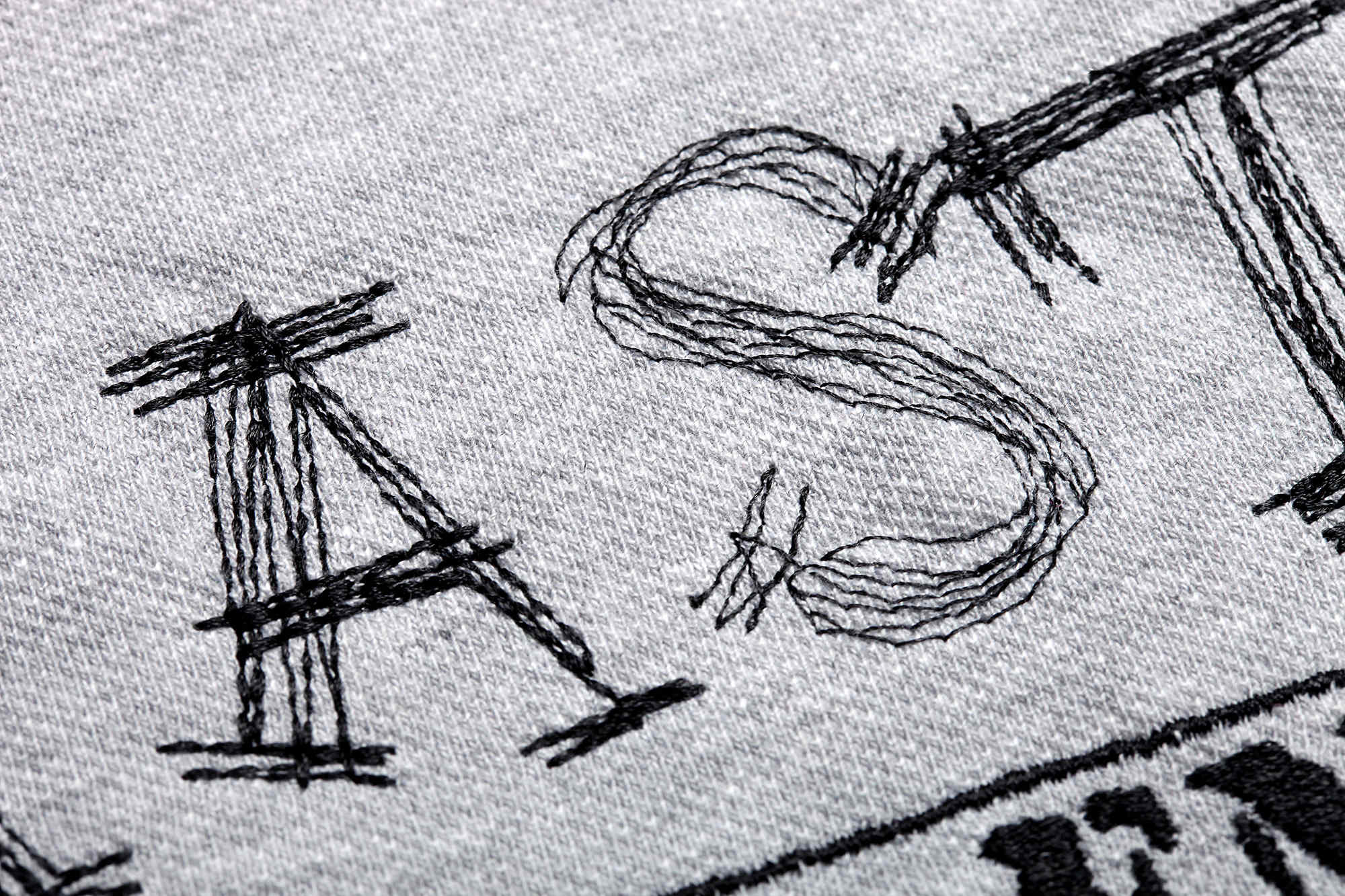 Eine innovative Weise von Stickereien mit winzigen Stichen. Perfekt für „lichte” Aufschriften auf Textilien. Eine schöne Alternative zu Stickereien in großem Format.